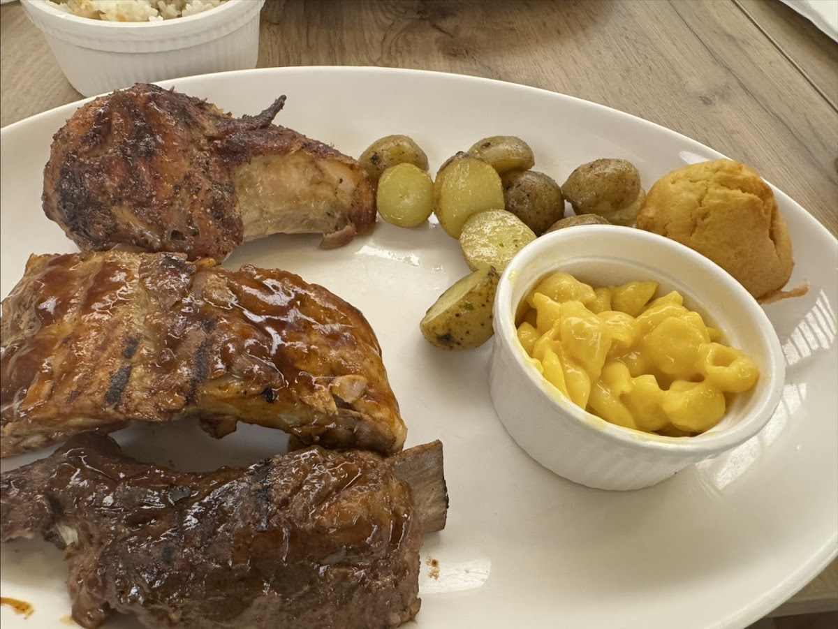Half Slab Rib and Quarter Roasted. Comes with 2 Regular Side Dishes and Muffin